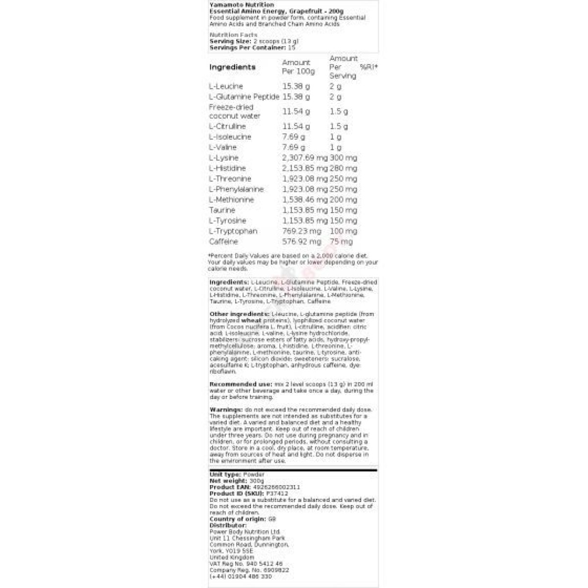 | Handelsname | Je nach Marke und Formulierung unterschiedlich (z. B. AminoX, Optimum Nutrition Essential Amino Energy) |